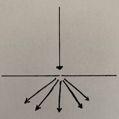 Although, what’s also interesting to me is that the shadows created by the diffraction pattern — if they can technically be called shadows — are created by the movement of light itself, its own waves canceling each other out as a result of their dissonant patterns, and thereby eradicating the energy of light.